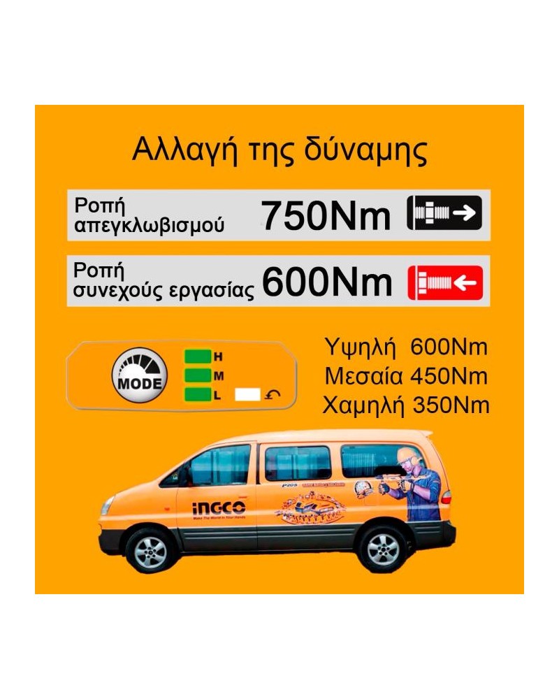 Μπουλονόκλειδο Κρουστικό Μπαταρίας 42V Li-Ion 600-750Nm CIWLI42602E Ingco